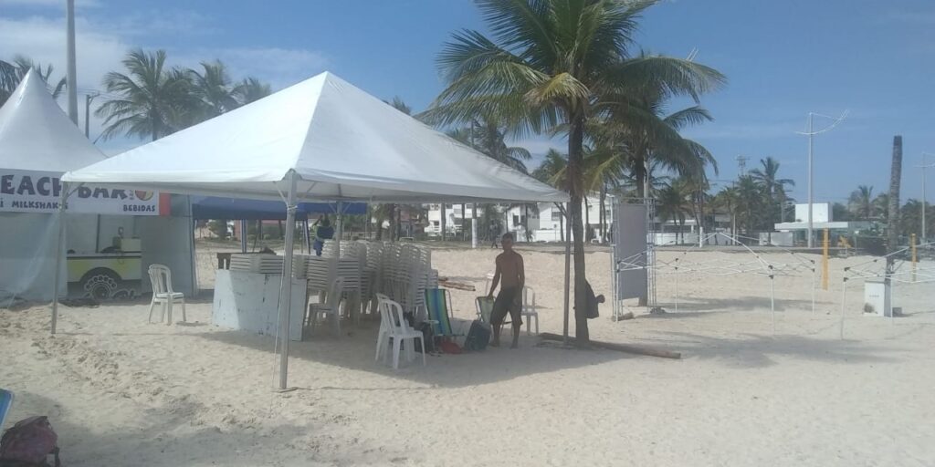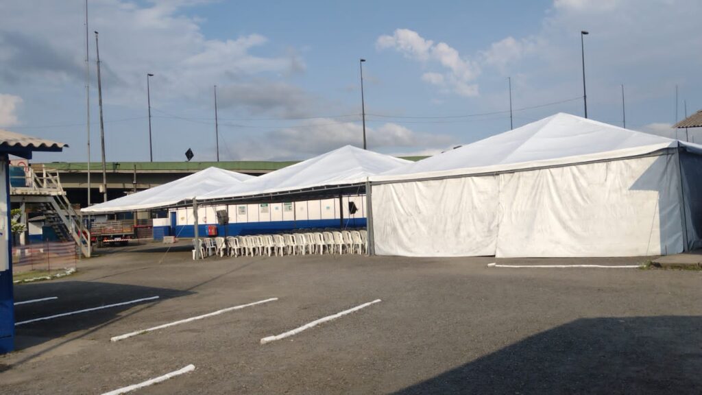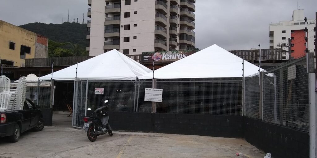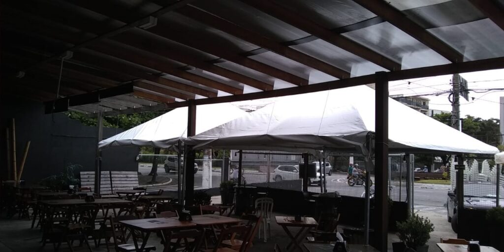 Cobertura: lona branca, com fechamento total ou parcial nas laterais